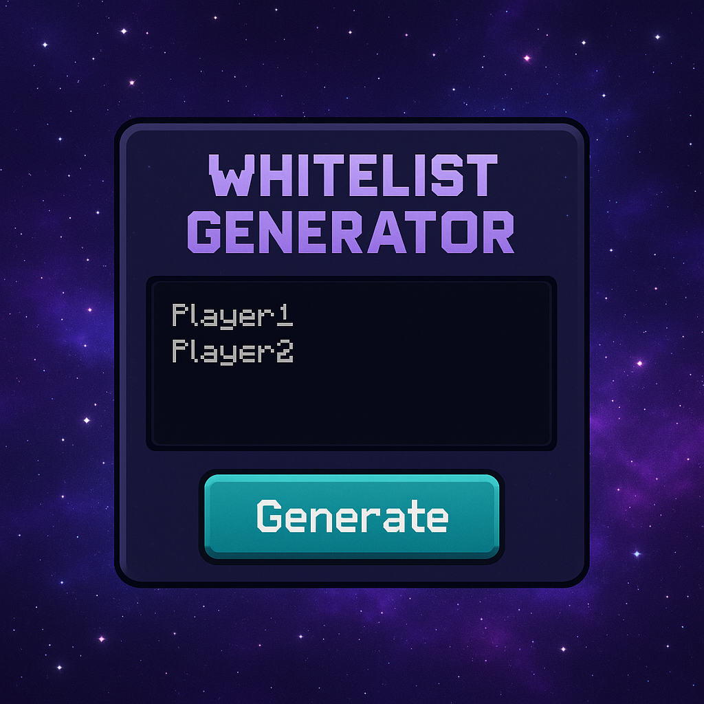 Generate a valid whitelist.json file instantly for your Minecraft server by adding usernames or UUIDs easily.